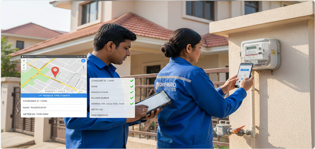 Field teams verify consumer identity, meter condition, connection status, and actual usage patterns at the premise.